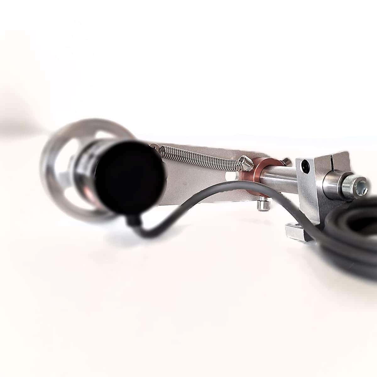 Držák slouží pro uchycení enkoderu na výrobní linku. Odpružený držák zajišťuje stabilní přítlak i na nerovném povrchu.